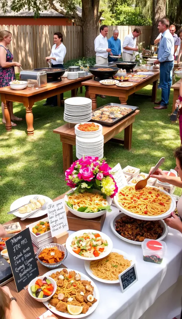 Skip the traditional plated dinner and opt for creative food stations or a buffet setup.