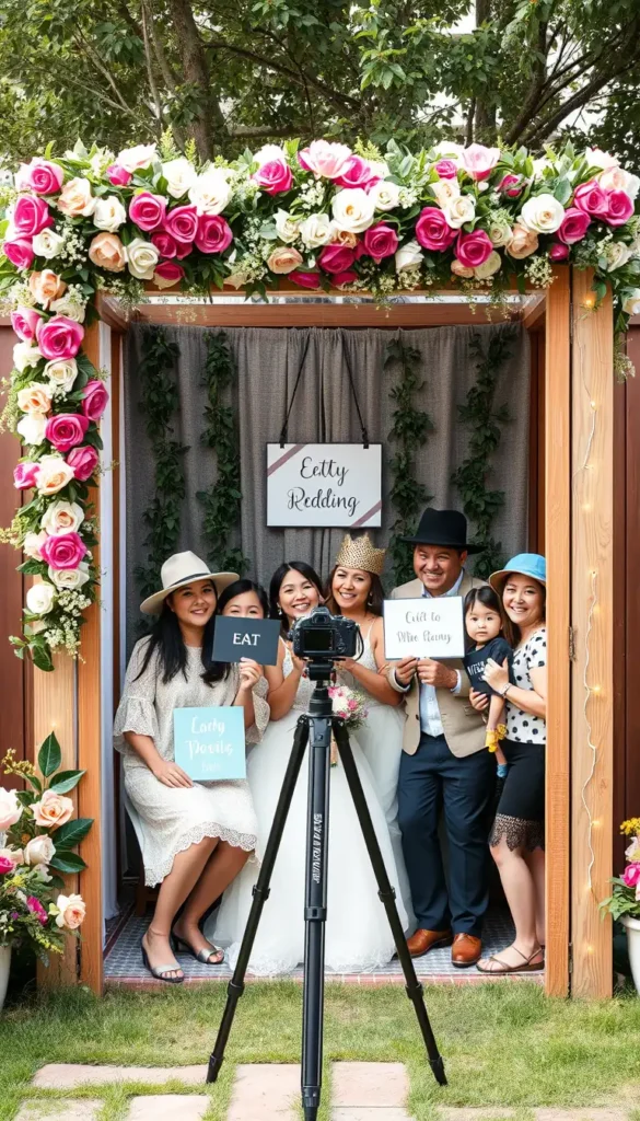A photo booth is a must-have for modern weddings. Create a DIY photo booth corner in your backyard.