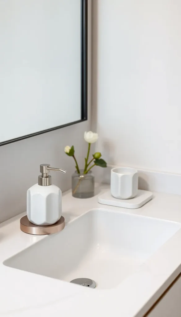 Choose matching sets in materials like ceramic, glass, or matte metal for a polished look.