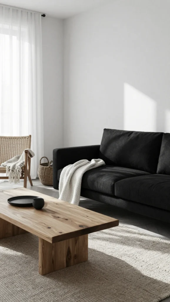 6. Black and White Apartment with Natural Textures