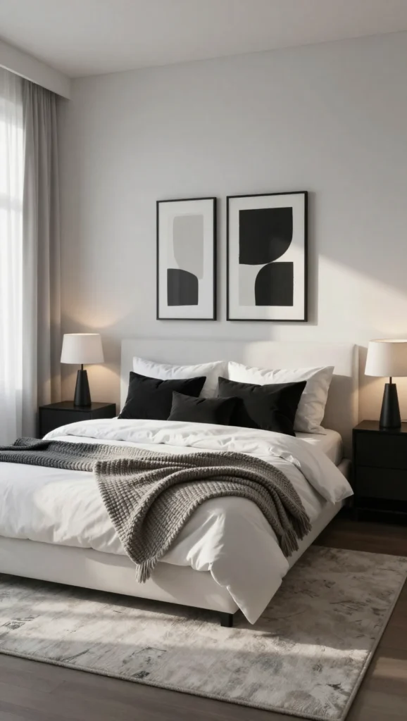3. Cozy Black and White Bedroom Aesthetic