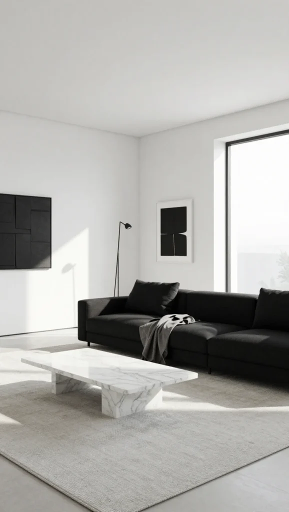 1. Minimalist Black and White Living Room