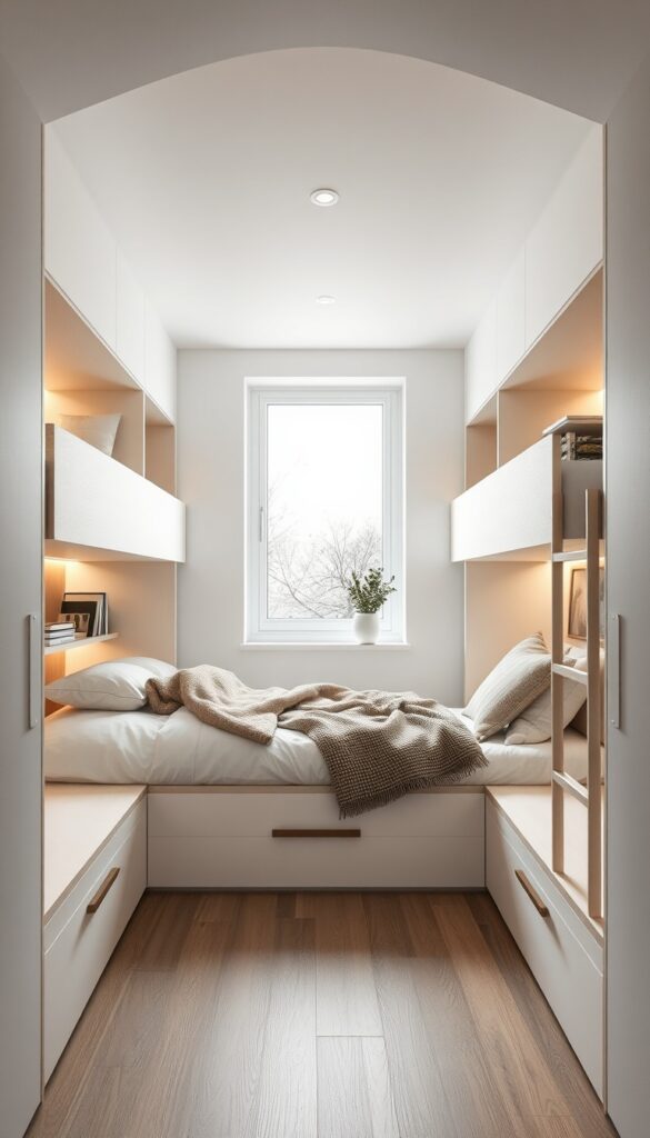 For families or shared rooms, built-in bunks provide a permanent and sturdy solution that blends seamlessly with the room’s architecture.