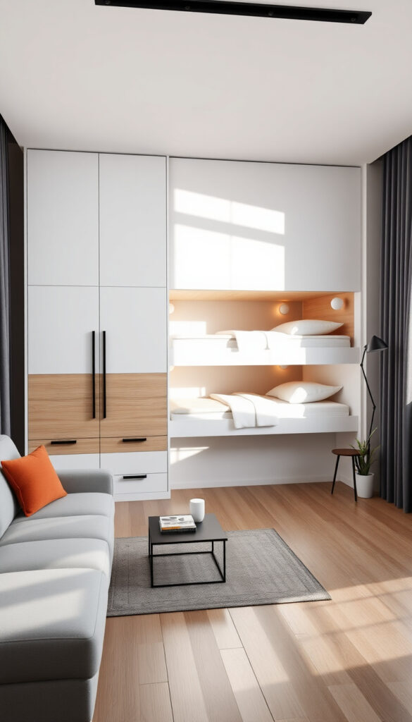 If flexibility is your priority, foldable or Murphy-style bunk beds are a game-changer. These beds can be folded into the wall or collapsed when not in use, instantly freeing up floor space.