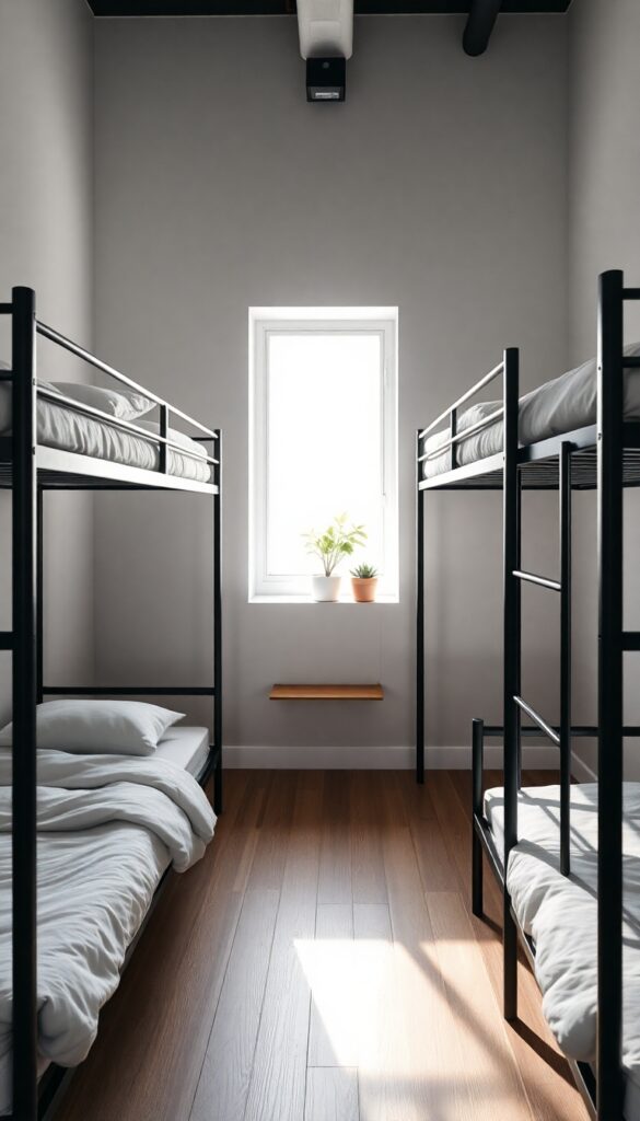 For those who prefer a lightweight and budget-friendly option, minimalist metal frame bunk beds are an excellent choice. These beds take up less visual space compared to bulky wooden frames, making the room feel more open.