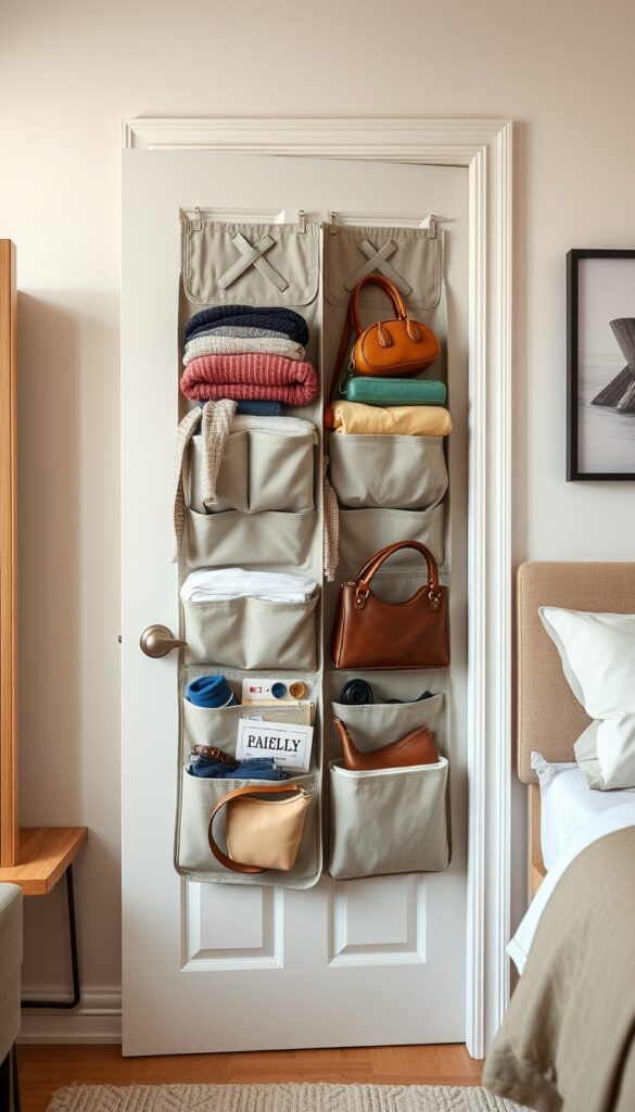 Over-the-door organizers make use of vertical space that usually goes unused. They’re ideal for small rooms or shared spaces.