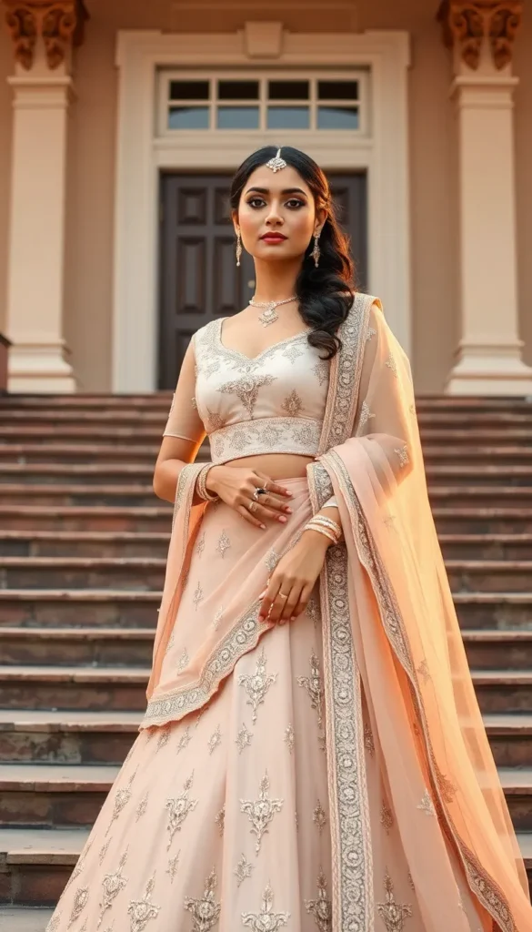 A minimal lehenga is perfect if you still want a bridal vibe without heavy embroidery.