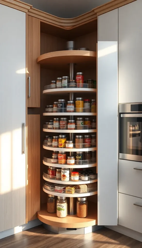 - Choose multi-tiered Lazy Susan shelves for vertical storage