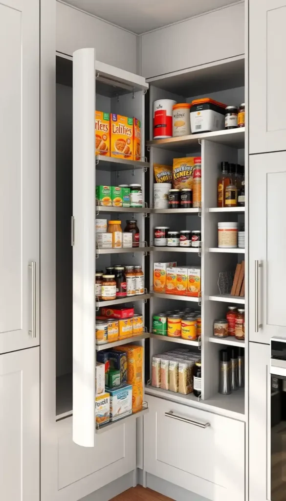 2. Use Vertical Pull-Out Corner Pantry Shelves