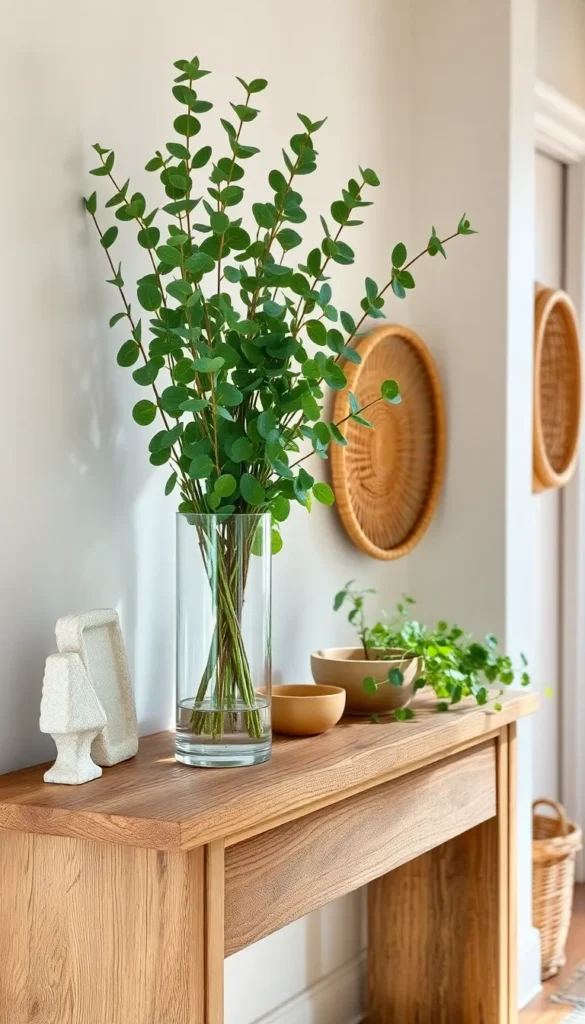 Bringing nature indoors instantly adds warmth and freshness to your entryway. Decorate your table with plants, flowers, or natural textures like wood and stone.