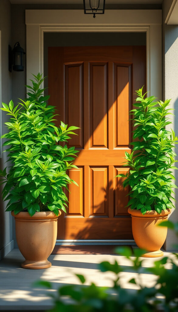 Plants symbolize growth, vitality, and renewal in Feng Shui. Placing healthy greenery near your front door can boost positive energy.