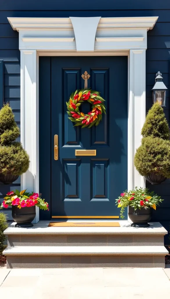 - Painting the door in bold colors like navy blue, deep red, or forest green