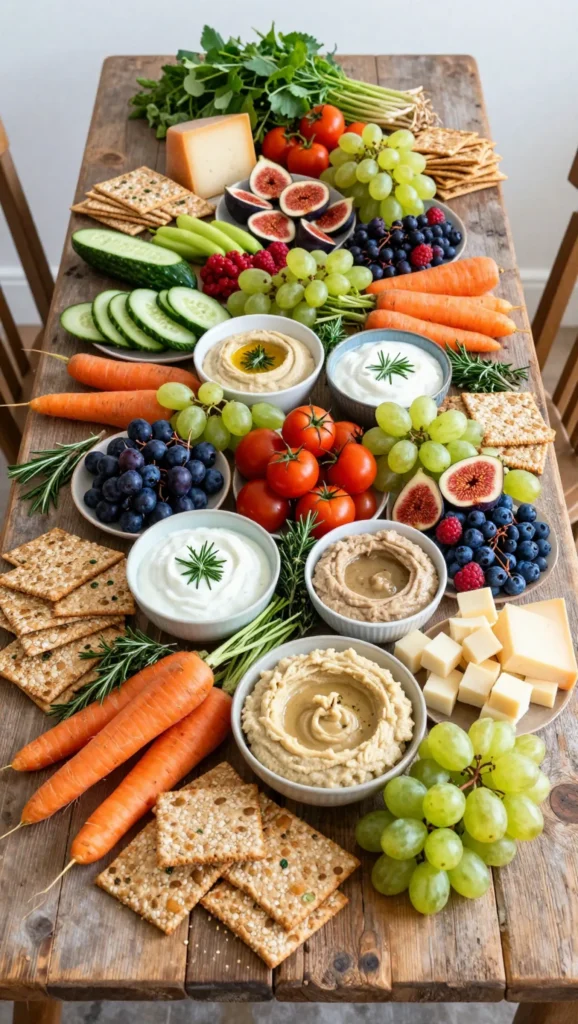Include nuts, herbs, and dips.