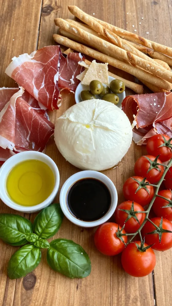 Include items like Mozzarella, Prosciutto, and Parmesan.