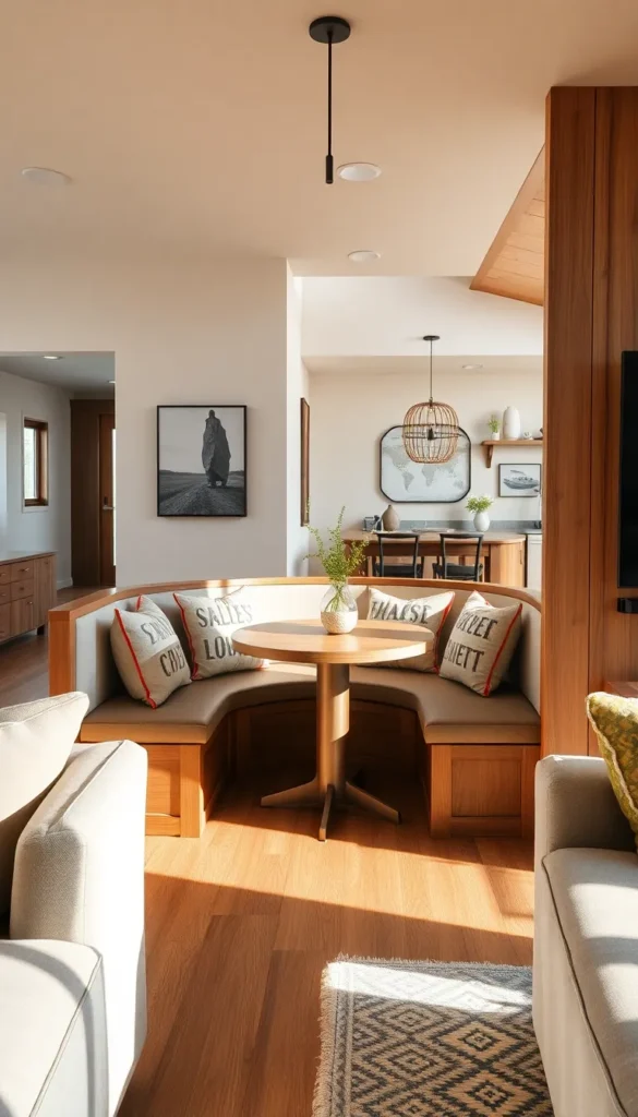 - Add a corner bench or banquette seating