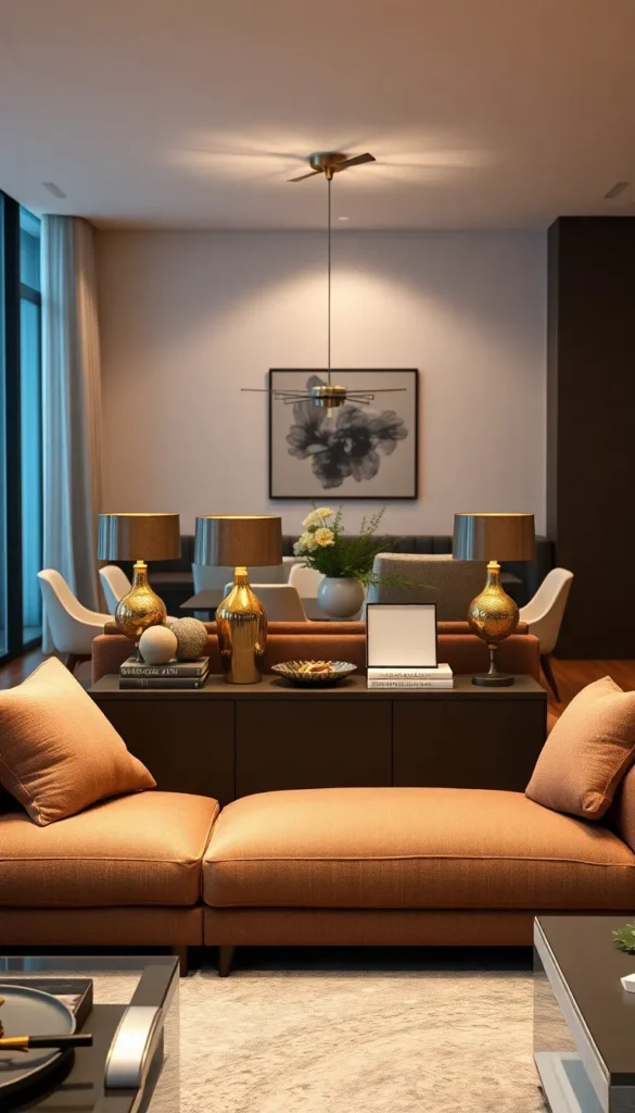 A console table placed behind the sofa can act as a divider.
