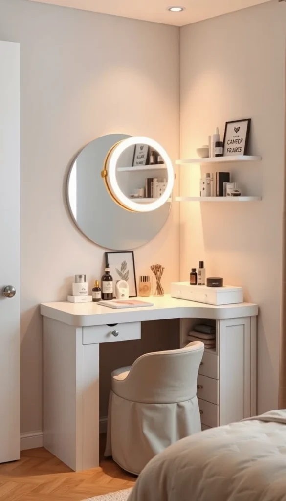 Not everyone has room for a large vanity setup. A corner makeup table is a smart solution for maximizing unused space while keeping your room organized.
