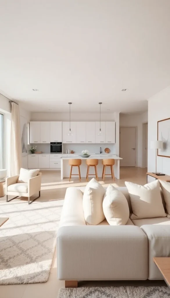 - Avoid clutter: Keep surfaces clean and organized to maintain the open feel.
