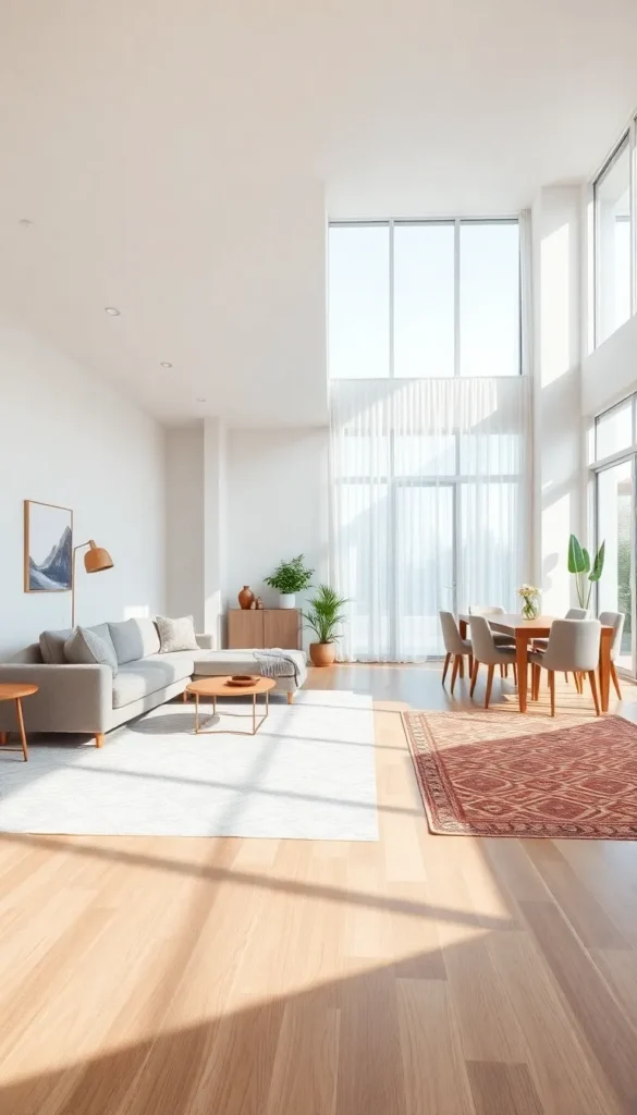 Area rugs act as visual boundaries without disrupting the open feel. This technique is especially effective in studio apartments or smaller homes.