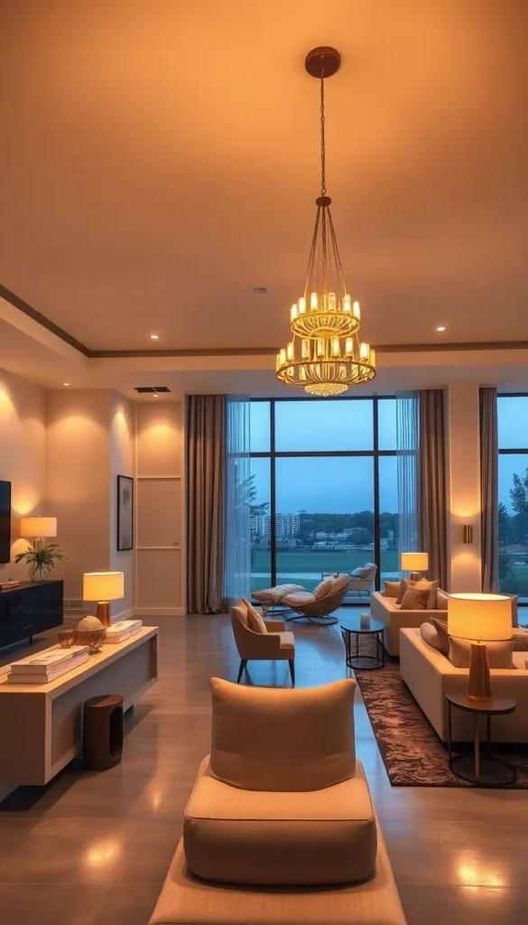 Different lighting styles subtly signal the purpose of each zone while maintaining visual flow.