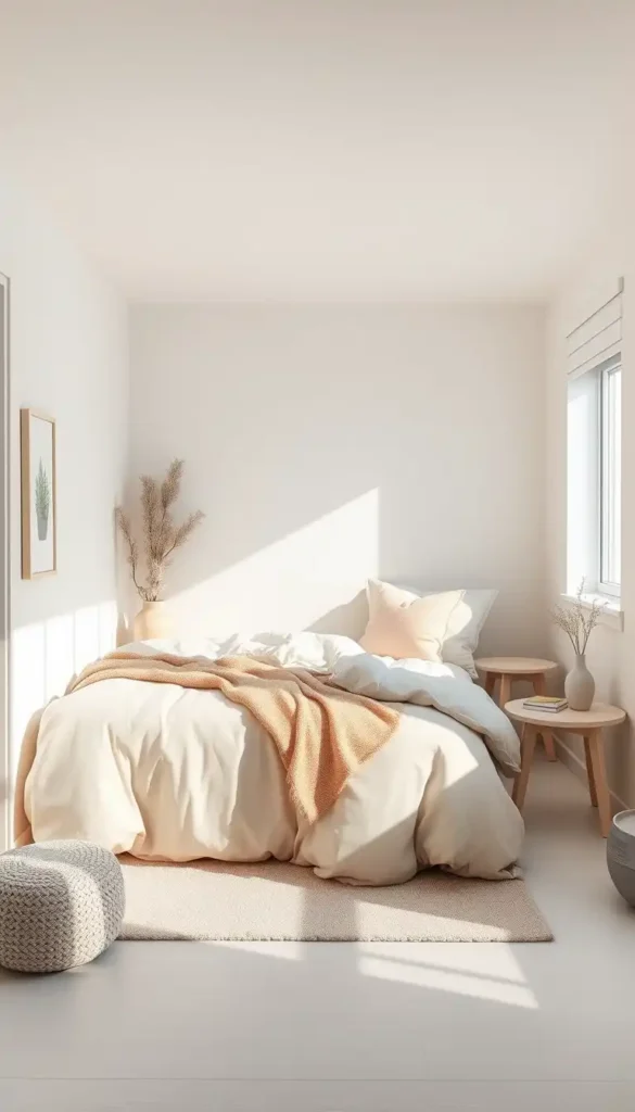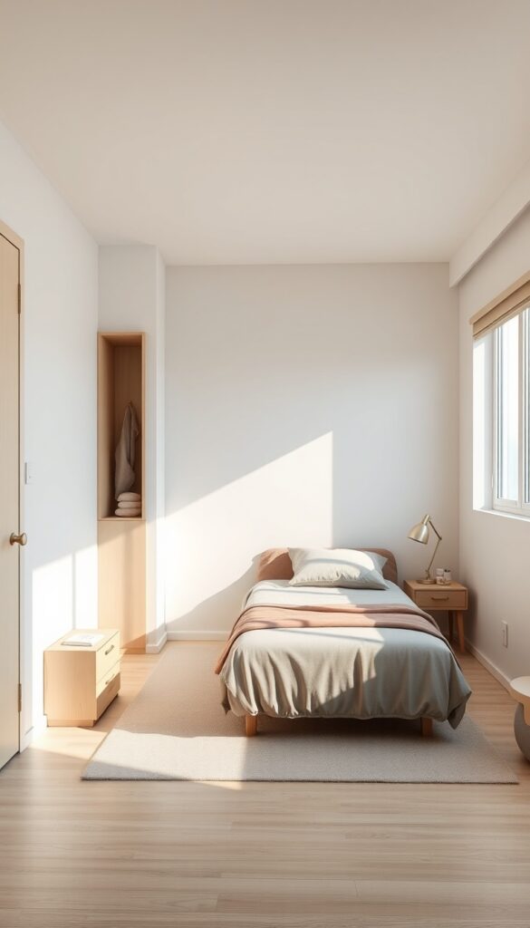 Color plays a powerful role in how a space feels. Light and neutral tones reflect more light, helping small bedrooms appear larger and brighter.