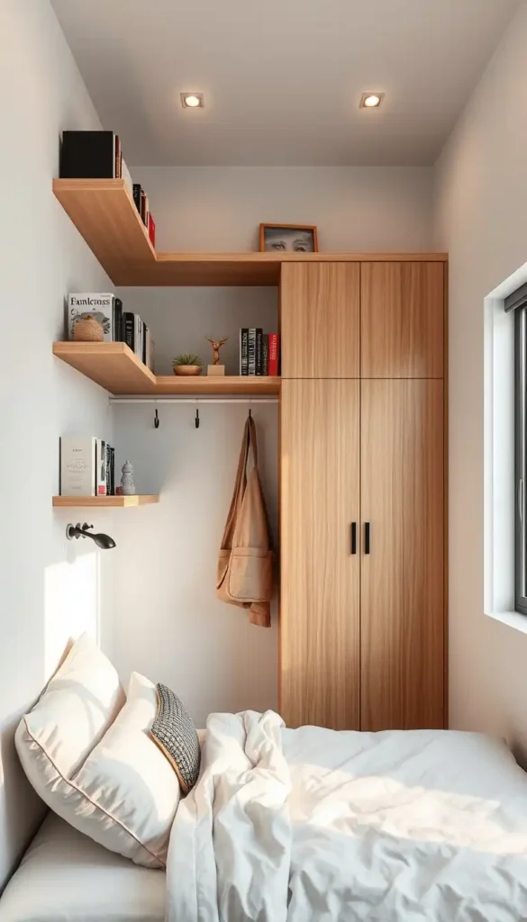 When you can’t expand outward, go upward. Vertical space is often underutilized in small bedrooms, but it can make a huge difference.