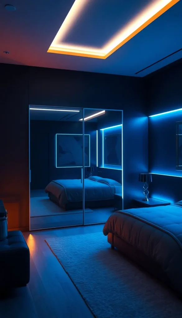 Lighting can completely transform the look of your sliding mirror closet doors, especially at night.