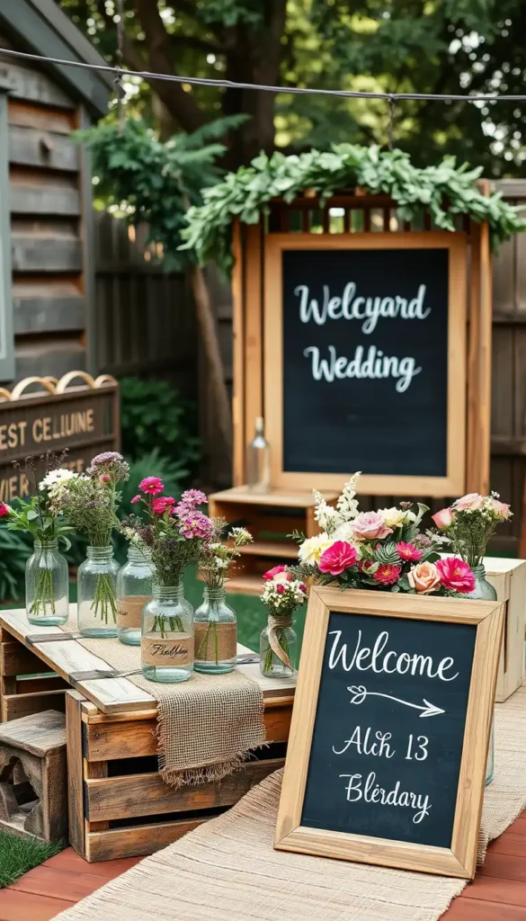 Rustic décor fits perfectly with backyard weddings. It’s charming, timeless, and easy to achieve on a budget.