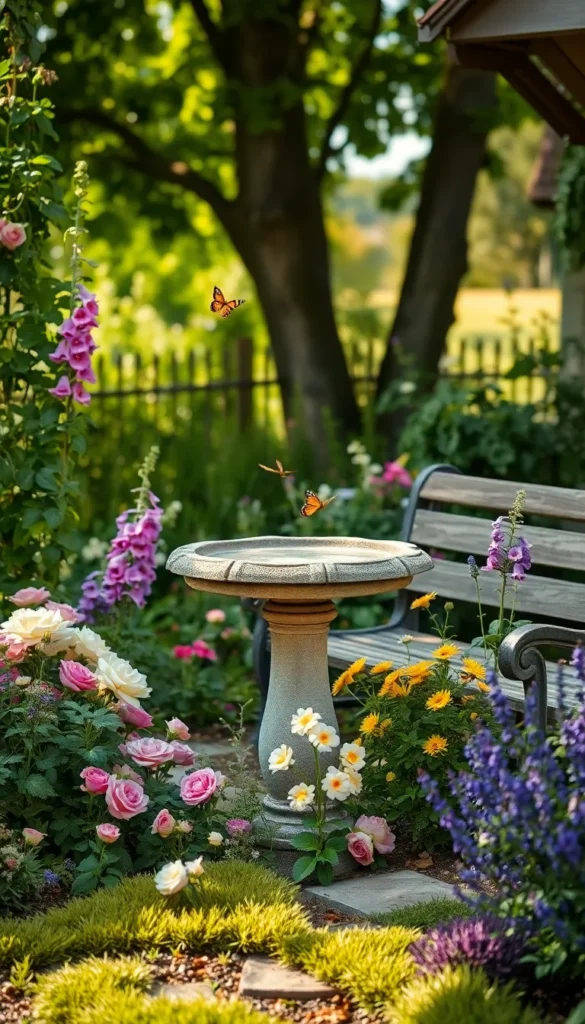 For example, a rustic wooden bench surrounded by flowers can become a peaceful spot to relax, while a vintage-style birdbath adds both beauty and function.