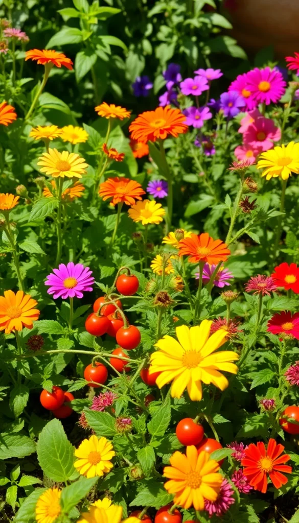 Plant herbs like basil, mint, and parsley alongside your flowers. Add vegetables like cherry tomatoes, lettuce, or peppers for a productive yet beautiful garden.