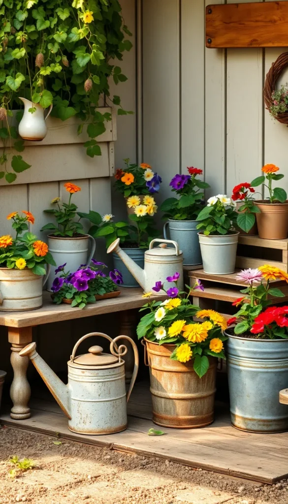 Use old watering cans, wooden crates, ceramic teapots, or even repurposed buckets as planters. These unique containers create a nostalgic feel and make your garden stand out.