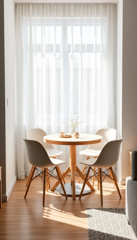 A bulky dining table can overwhelm a small space. Instead, opt for a compact or round dining table that fits comfortably without blocking movement.