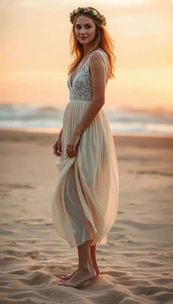 Accessorize with layered necklaces, loose waves, and sandals. You can also add a flower crown for a true bohemian vibe.