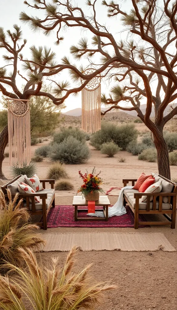Boho weddings are becoming very popular due to their relaxed and artistic vibe. Use dreamcatchers, pampas grass, macramé hangings, and earthy tones.