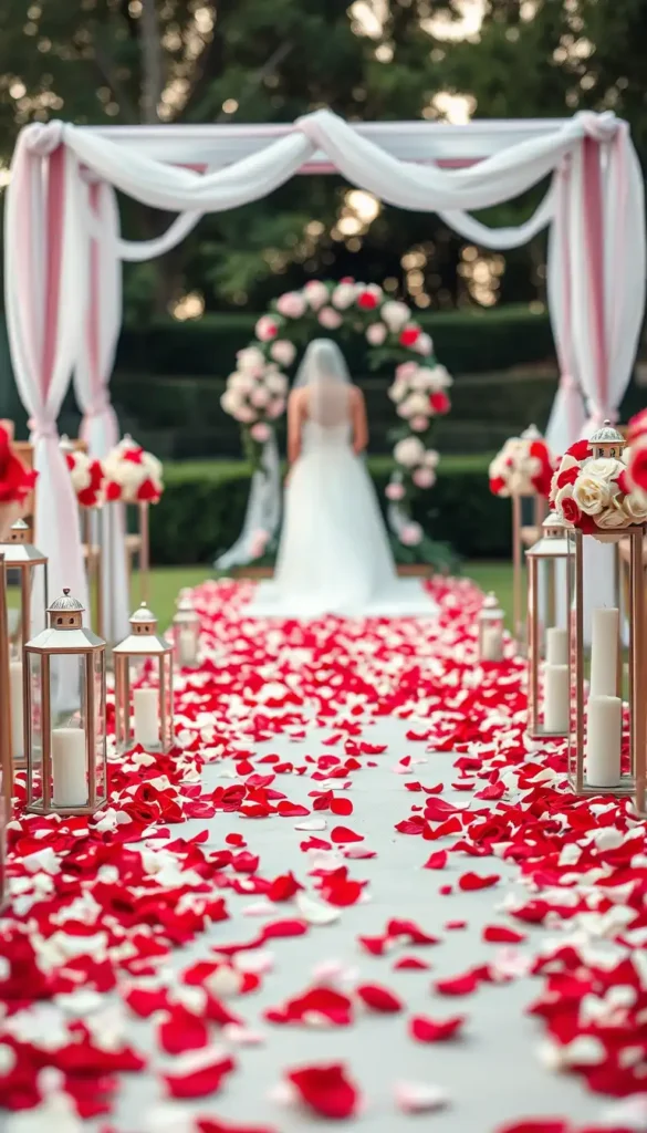 Transform your wedding walkway into a floral paradise. Line the aisle with rose petals, lanterns, or small floral arrangements.