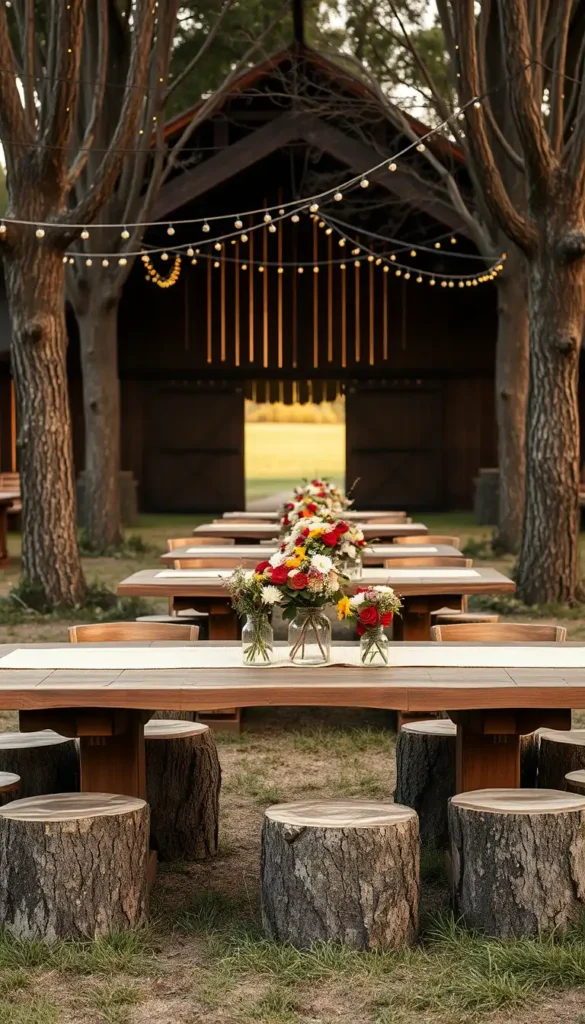 Add burlap table runners, wildflowers, and soft candlelight to complete the rustic charm. This theme is simple yet extremely stylish and warm.